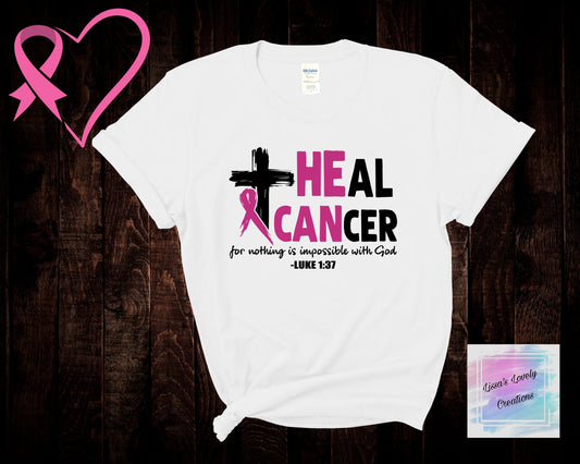 Breast Cancer Awareness Support Heal Cancer Luke 1:37 Shirt