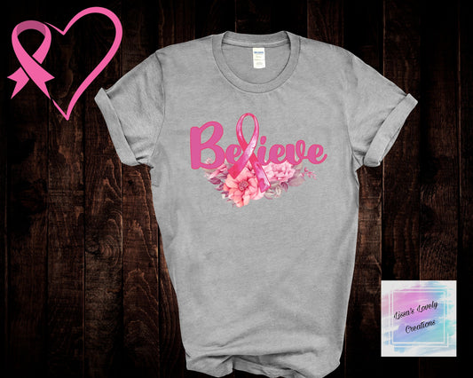 Breast Cancer Awareness Believe Floral Shirt