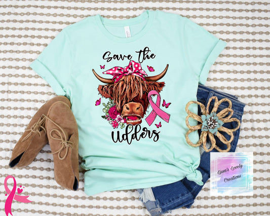 Breast Cancer awareness Highland cow save the udders Shirt