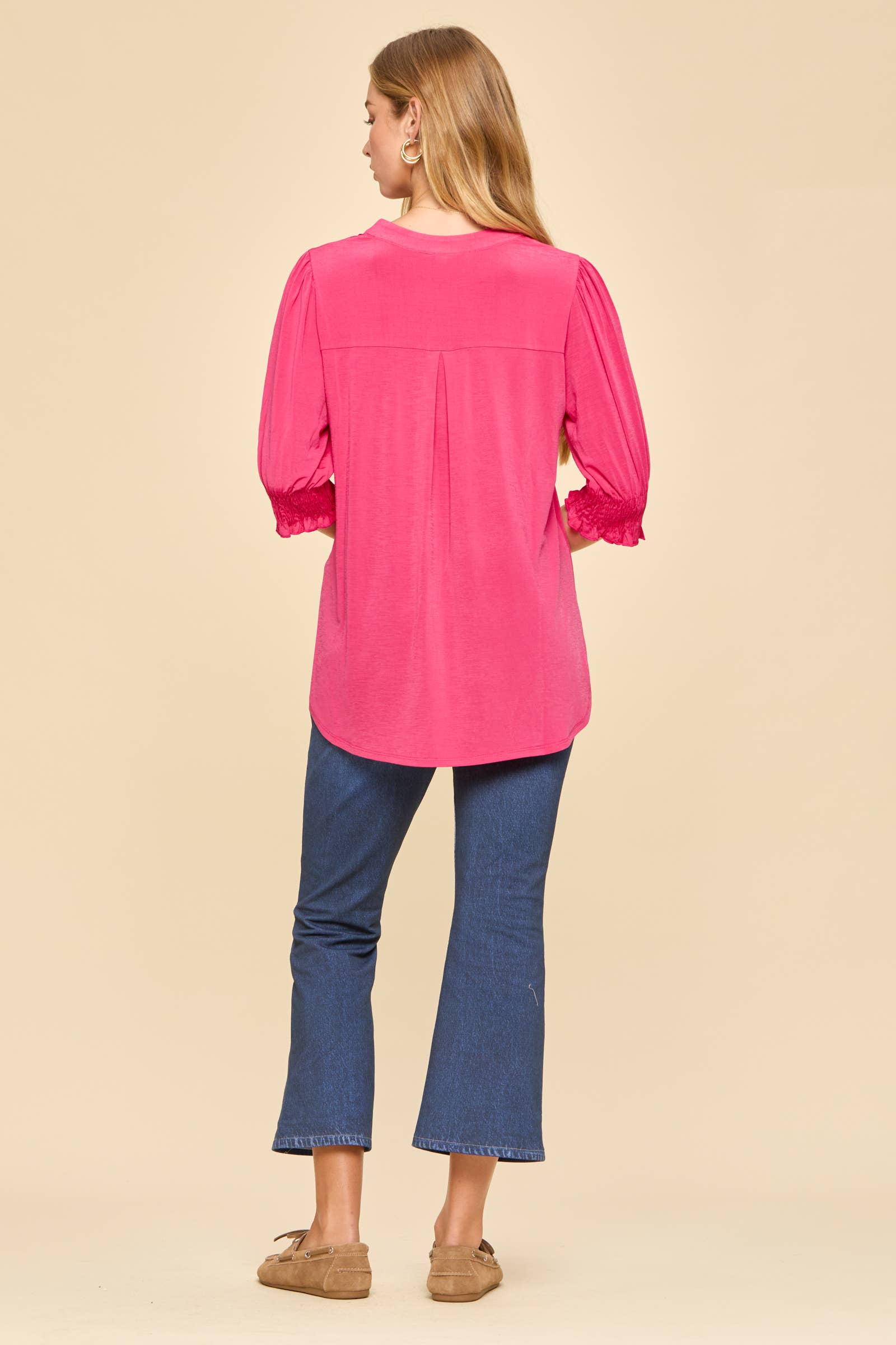 Dear Scarlett Smocked 3/4 Sleeve Lizzy Top